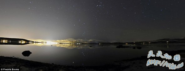 灯光和星星”。这是在挪威克瓦尔岛附近拍摄的夜空照片
