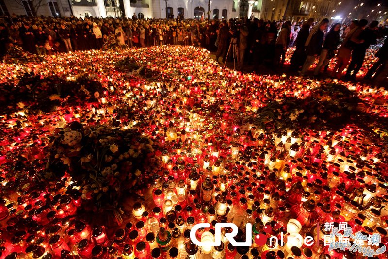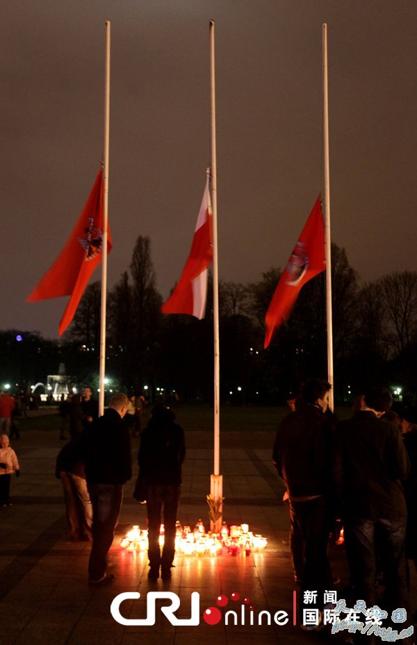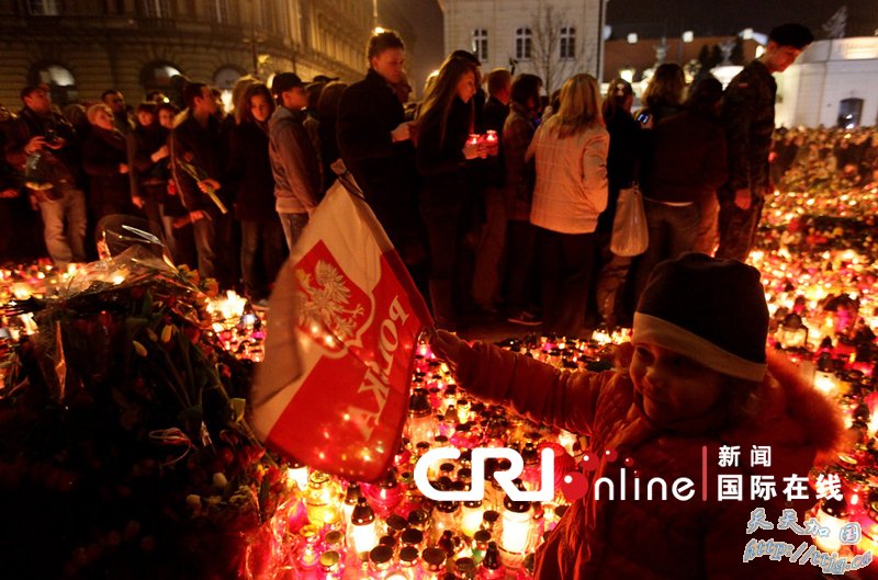 2010年4月10日,波兰华沙,波兰民众在总统府外摆放鲜花和蜡烛,对总统卡钦斯基夫妇和其他空难遇难者表示哀悼。当天,载有波兰总统卡钦斯基的客机在俄罗斯斯摩棱斯克附近坠毁。客机上包括波兰总统夫妇以及众多波兰高官政要在内的96人无一生还。