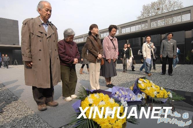 4月4日,日本日中和平研究会代表在侵华日军南京大屠杀遇难同胞纪念馆祭场向南京大屠杀遇难者默哀。清明节当日,日本日中和平研究会代表一行数人,在侵华日军南京大屠杀遇难同胞纪念馆祭奠南京大屠杀遇难者。新华社记者韩瑜庆摄