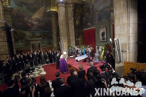 4月22日,国际奥委会终身名誉主席萨马兰奇的遗体告别仪式在西班牙巴塞罗那举行。这是遗体告别仪式现场。新华社发 (巴克摄)