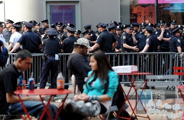 5月2日,警察在美国纽约时报广场集结准备进行巡逻。纽约市警察局长凯利当天说,没有证据显示巴基斯坦塔利班策划了1日傍晚发生在纽约时报广场上的未遂汽车炸弹袭击事件。2日早些时候,美国一家名为“长期战争报”的新闻网站援引巴基斯坦塔利班头目卡里·侯赛因·马哈苏德在网上发布的一段附有图片的录音说,他对“在美国的袭击承担全部责任”。时报广场1日傍晚发生未遂汽车炸弹事件后被封锁,2日清晨大部分区域已重新向车辆和行人开放。新华社记者申宏摄