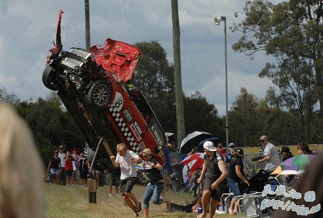 据《每日邮报》报道,在澳大利亚布里斯班举行的一场车赛中发生惊险一幕,一辆赛车突然失控,翻滚着砸向观众区,观众四散奔逃。幸亏大部分人躲闪及时,只有两人受伤。