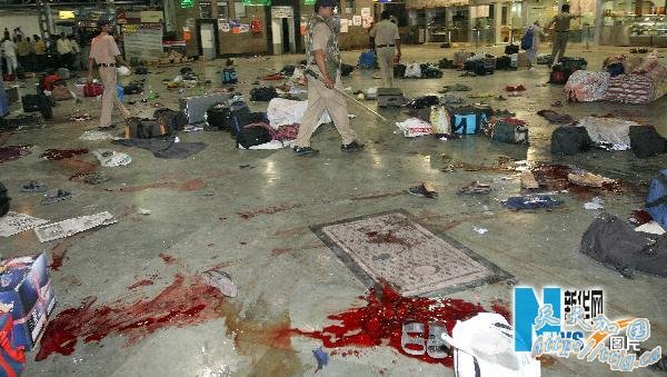 这是2008年11月26日拍摄的印度孟买CST火车站的恐怖袭击现场。新华社/法新