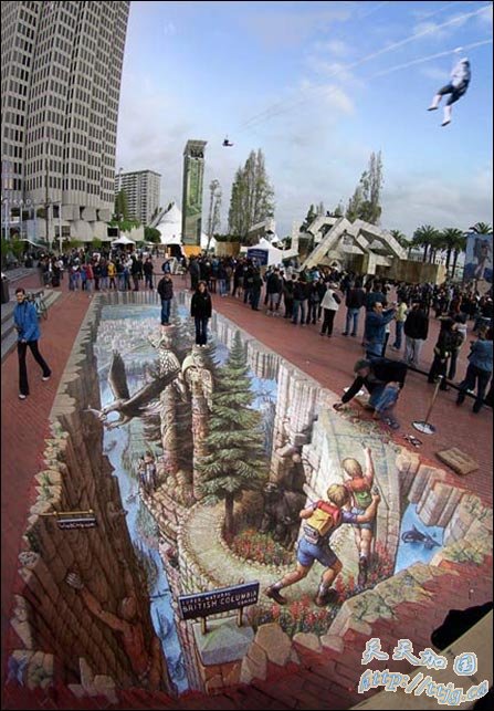 国际在线专稿:一部《阿凡达》让3D电影给人留下了深刻的印象。与此同时,街头画家们也将这种技术应用到了街头画画上。逼真的效果令人叹为观止。其中知名度最高的画家莫过于前美国宇航局科学家、三维粉笔画大师库特·维纳。(李杰)