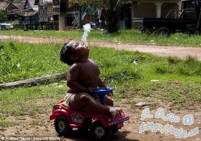 据英国《每日邮报》报道,印度尼西亚2岁幼童黎萨(Ardi Rizal)有严重的烟瘾,每天要抽40多根烟。他的健康状况每况愈下,行动有困难。 当地官员许诺如果这个孩子戒掉烟,他们就奖励一辆新汽车。但是黎萨的父母觉得很为难,孩子烟瘾很大,如果不满足他,他就疯了一样的发脾气。 黎萨只抽一种牌子的烟,他的这一恶习每天要花掉3.78英镑。26岁的母亲啜泣到:“孩子瘾太大了。如果不给他烟,严重时他会用脑袋撞墙。他告诉我他觉得很晕,很恶心。” 但是孩子的父亲态度却恰恰相反,他说:“他看起来很健康啊,我不觉得有什么问题。” 中央统计局发布的数据显示3到15岁的印尼儿童中有25%都抽过烟,3.2%是主动吸烟者。黎萨的例子是非常典型的例子。 印尼儿童保护委员会主席将原因归咎于天花乱坠的烟草广告和吸烟的父母。儿童保护者称二手烟对儿童的伤害也是很大的,而且随着他们长大,身边 1/3的人都在抽烟,也会给他们造成不小的压力。