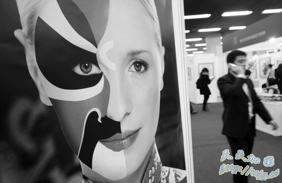2009年11月,北京冬季房地产展示交易会上,一家海外房地产展区用“外国美女脸部绘有京剧脸谱”宣传画拉近与中国购房投资者距离