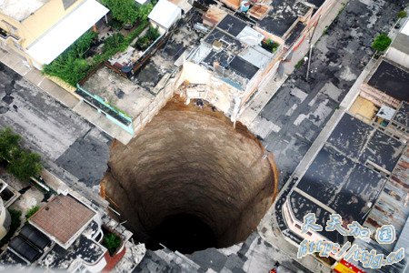 由于“阿加莎”肆虐的影响,危地马拉首都危地马拉城出现一个深达60米的塌陷洞,据说有一栋3层建筑坠入坑中。