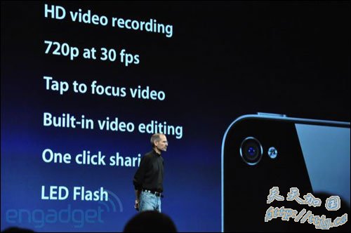除了提升后置摄像头的质量外,苹果还为iPhone 4增加了前置摄像头。这一摄像头可以被用于视频会议,苹果和乔布斯预计这将是手机未来的一大应用。