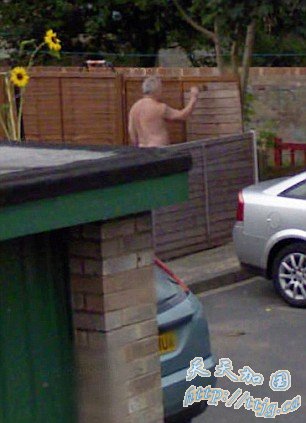 一位英国居民在自家后院内一丝不挂地刷墙