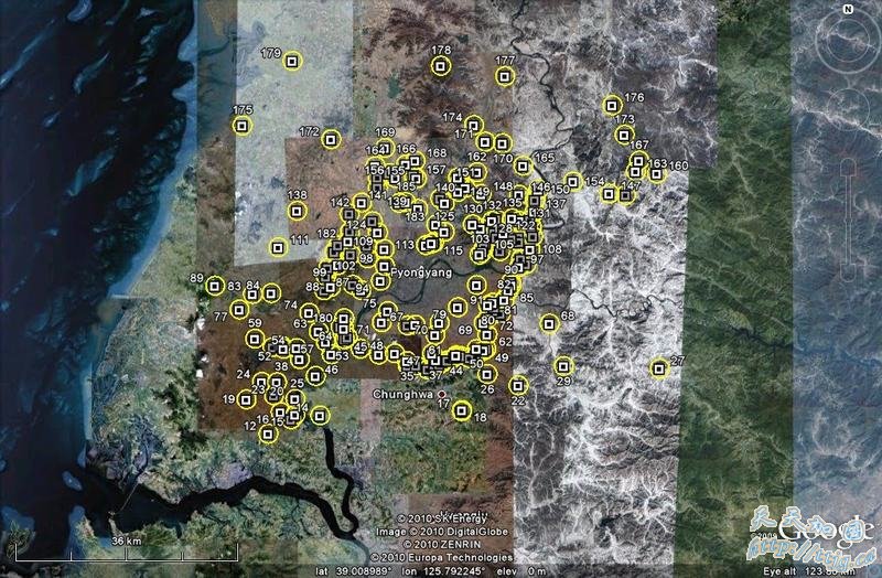 据韩国《中央日报》6 月12日报道,美国一位军事迷通过分析谷歌地球提供的卫星影像资料,制作了朝鲜平壤高射炮(机枪)的分布图,并把它公开到了自己的博客上。