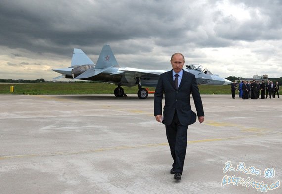随后,普京在波戈丹的陪同下来到T-50战机前,并亲自登上飞机、进入驾驶舱。波戈丹详细向他介绍了战机的特性,还特别提到能让飞行员手不离开操纵杆就可对飞机进行基本操控的新系统。他说,这对于减轻飞行员的负担非常重要。普京回答说:“我知道,我也飞过。”