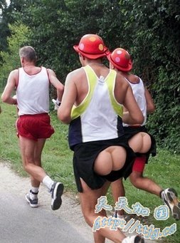 两名运动员身穿“假屁股”在跑步。(资料图片)
