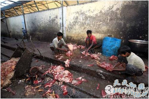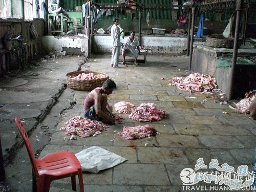 据一位从事印度旅行的旅行代理商说:“要是你去看一眼印度的肉类市场的话,就再也不想吃肉了!市场内不仅不打扫,扔掉的肉块和血块就堆在市场内。