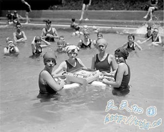 今年年初,纽约下曼哈顿区的犹太人传统博物馆展出了当地根深蒂固的麻将文化。这一展出引发了来自各地的爱好者和兴趣者的研究探讨。人们这才突然发现,早在20世纪20年代,这项游戏便已“原汁原味地”从麻将最风行的国度中国传到了美国。当然,“移民”的麻将游戏也染上一些美国特色,就是同夏天产生了紧密联系。 一张拍摄于1924年的老照片同时展示了麻将进入美国的时间及其“移民”后的特色。照片中就,四名美国女性在泳池里的浮桌上打麻将。但这项游戏也会反映出不好的一面,一名女性曾如此描述:麻将只是一种“形式上的治疗方法”,被妻子们用以慰藉对在城市中工作的“图谋不轨”的丈夫们的担忧情绪。