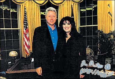 美国第42任总统克林顿(1993-2001)也许要数唯一一个在全美国人面前就自己的性丑闻事件道歉的美国总统了,他也可说是被他的“莱温斯基” 害得最惨的一个美国总统。1998年,比尔-克林顿曾当众宣称,他与白宫实习生莱温斯基“没有发生任何性关系”,但莱温斯基随后出示了一条沾有克林顿精液的蓝裙子。8个月后,克林顿不得不被迫承认错误∶“我曾经与莱温斯基小姐发生过不正当性关系,我误导了人们,包括我的妻子。”