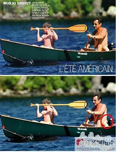 《巴黎竞赛画报》刊登了萨科齐赤裸上身和他的儿子路易斯在美国度假地湖泊中划船的照片,萨科齐在这张照片中的身材相当棒。而《快报》所刊登的原版照片显示,萨科齐的腰部有一些赘肉。