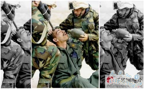 此张伊战照片中,顶着伊拉克战俘头部的步枪被删除。