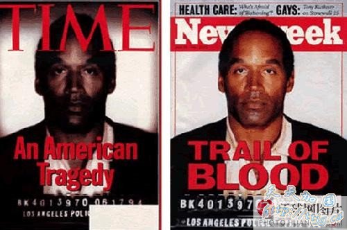 1994 年6月27日,《新闻周刊》和《时代杂志》的封面登出了同一个辛普森(O. J. Simpson)脸部照片的两个不同版本。《时代杂志》使辛普森的脸看上去更黑,模糊并且胡子拉碴。这幅照片的始作俑者,《时代杂志》插图画家马特胡林 (Matt Mahurin)声称“他制造这幅照片的目的就是想使它更加巧妙并且更吸引人的注意。”