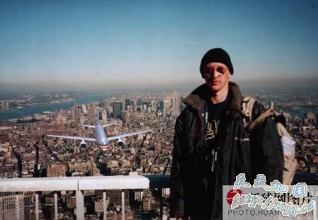 这张照片出现在9·11袭击仅几个星期后的互联网上。然而,对这幅照片进行了合理的评估后很快使它漏了陷儿。每个在9·11之前参观过世贸中心的人都知道,室外观景台在2号世贸中心的楼顶上(南楼),但是这幅照片显示,游客面向北,脸朝向帝国大厦,这与2号楼被飞机撞上的方向相反。这幅照片在这个历史时刻给美国人造成了巨大的感情冲击,成为当时有代表性的新闻图片之一。