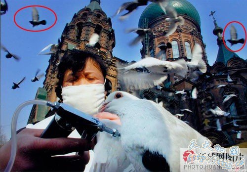 2009 年6月26日《人民日报》刊登的一幅署名李辉的照片被疑造假,引起人们不小的怀疑和震动。照片的文字说明:广西南宁市被誉为“中国绿城” ,人与自然和谐共处。画面是在城市中某个公园的绿地所拍,作者主要反映人类与鸽子怎样的和谐相处,其乐融融。作者为增加鸽子的数量,就在同一幅照 片中复制了许多相同的鸽子粘贴在画面上。