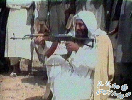 基地组织头目本·拉登练习射击。从上世纪80年到初至1989年,美国中央情报局与本·拉登合作,在阿富汗展开反苏“圣战”。 (资料照片)