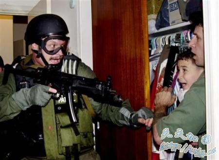 2000年4月22日,美国移民局特工将男孩埃连·冈萨雷斯(Elian Gonzalez)从迈阿密的美国亲属家中强行带走。1999年11月22日,6岁的埃连被母亲带离古巴乘船偷渡前往美国,母亲在偷渡途中死于海难。埃连获救后被送到美国亲戚家中。