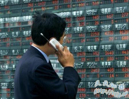 2000年10月18日,日本东京,一名男子在街头用手机打电话。
