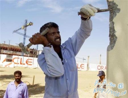 2001年3月22日,阿联酋迪拜,工人在建筑工地工作。迪拜凭借石油创造的巨额财富成为全球最现代化的城市,并且在中东的沙漠中创造一个又一个建筑神话。
