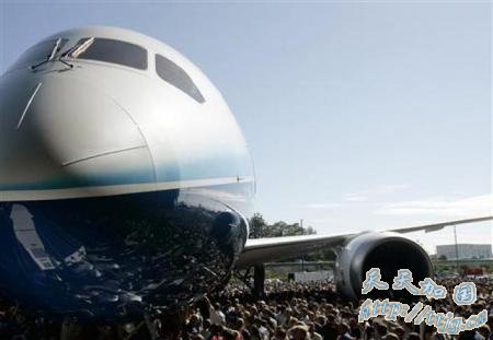 2007年7月8日,美国华盛顿,波音787梦幻客机首次亮相。波音787是波音公司1990年启动波音777计划后14年来推出的首款全新机型,在 2009年12月15日成功试飞,标志着787飞机的制造项目进入交付使用前最后一个阶段,预计在2010年交付使用。