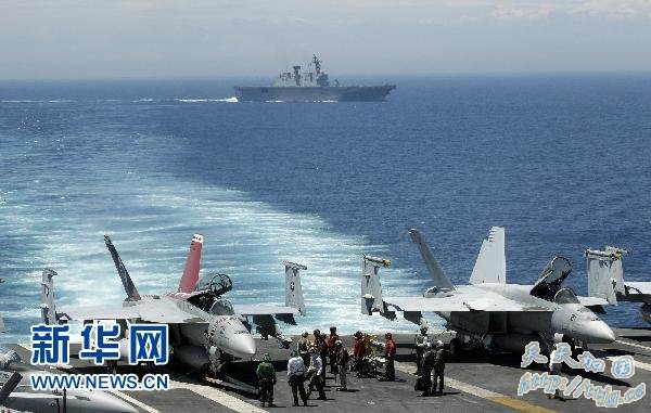 7月26日,美国海军“乔治·华盛顿”号航母上的战机准备起飞。新华社/法新