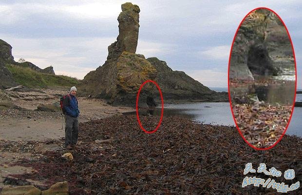 在英国苏格兰东海岸的偏远岩石地带,有一座以追溯到14世纪、名为坦特伦城堡的古堡。2008年 5月份,一名摄影爱好者拍摄了一张怪异的古堡照片,一位身穿传统服饰的怪异人物图像吸引了很多摄影爱好者。照片中,可以看到他(分不出男女)身穿传统苏格兰服饰,正透过木窗向外凝视。而坦特伦城堡中也没有雇佣任何穿这种服装的模特或者向导,三名摄像专家证实说,这张照片没有经过数码处理。