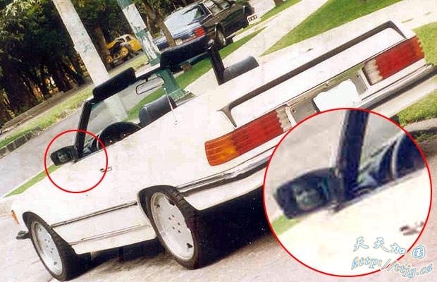 一个鬼脸出现在一辆汽车的后视镜中,摄影师说,当时没看到周围有人路过。怀疑者解释说,这个鬼脸可能是某个站在附近的人的头影反射,或者是数码处理的结果。