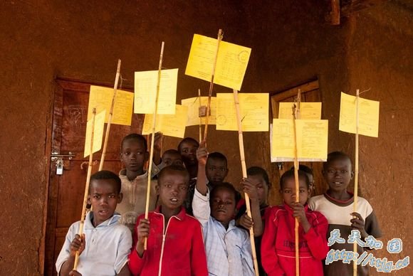 在埃塞俄比亚,柯恩索的Mechello小学,那些幸运的可以负担一美元学费的孩子们自豪地举着他们的成绩单。干净的水和卫生保护孩子们免受疾病的侵袭,使他们可以接受教育。