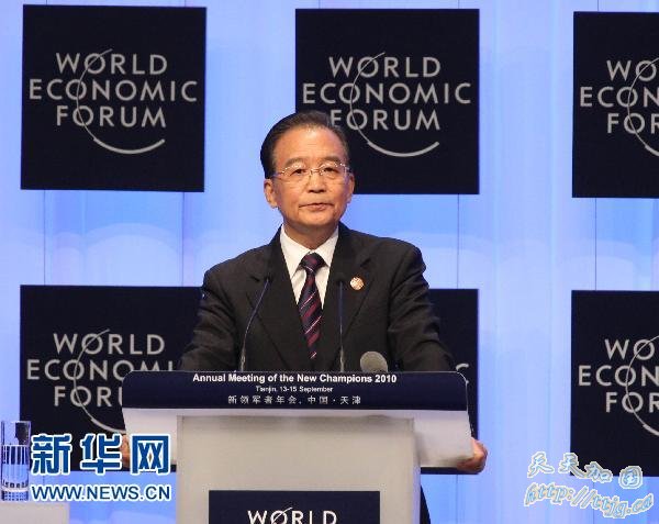9月13日,世界经济论坛2010年新领军者年会(简称“夏季达沃斯论坛”)在天津开幕。中国国务院总理温家宝出席开幕式并致辞。新华社记者丁林摄
