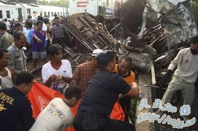 印度尼西亚国家铁道公司(PT Kereta Api Indonesia)发言人说,出事列车是一辆原计划从雅加达开往东爪洼省首府苏腊巴亚的客运列车,该辆列车行驶到从双轨换成单轨的北塔鲁坎火车站时,头部撞上一辆静止的列车尾部。