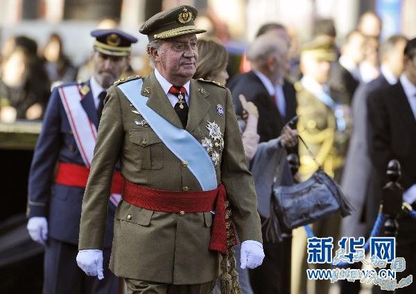 10月12日,西班牙国王胡安·卡洛斯在马德里出席国庆阅兵仪式。 新华社/法新