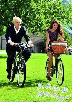 阳光,单车,美女 又是一张老牛吃嫩草的眼红照?NO NO NO!如果你发现此人乃伦敦现任市长Boris Johnson,只是与性感女星Kelly Brook一起出席“伦敦天空骑行”宣传活动,估计会大为释然吧。