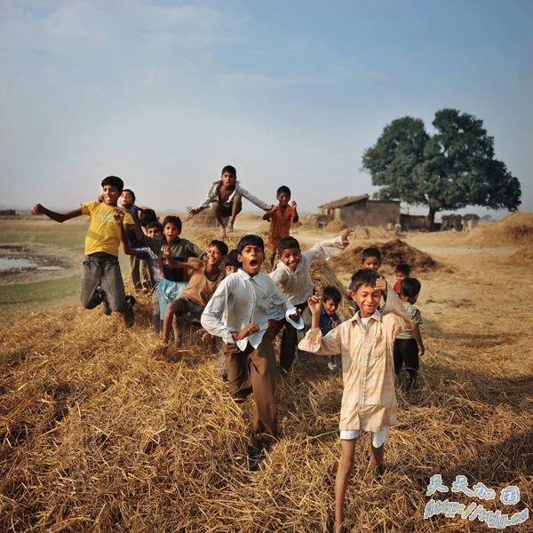 喜悦类冠军作品:快乐的瞬间——作者:陈峰。【拍摄感言】作品摄于尼泊尔的南毗尼,当地的孩子见到摄影师和看到恐龙一样惊奇,孩子们围着摄影师转悠着。见到一群孩子在麦垛上跳跃玩耍,便上前阻止大家来个冲刺,虽然语言不通,在当地孩子的配合下,拍摄下他们兴高采烈的瞬间。
