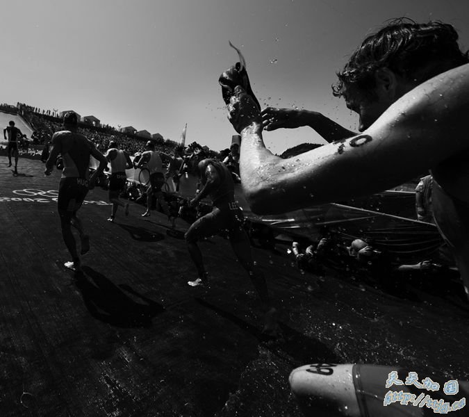 运动类优秀作品:出水蛟龙——作者:刘杰。【拍摄感言】北京奥运会铁人三项在十三陵水库举行,运动员结束游泳项目的比赛后,要直奔公路自行车比赛场地。我的位置在运动员出水登陆点,与他们相距仅2米左右,甚至能感觉到他们甩出的水滴。当时光线并不理想,阳光从头顶照下,我用24毫米镜头记录下运动员们你追我赶的焦灼状态