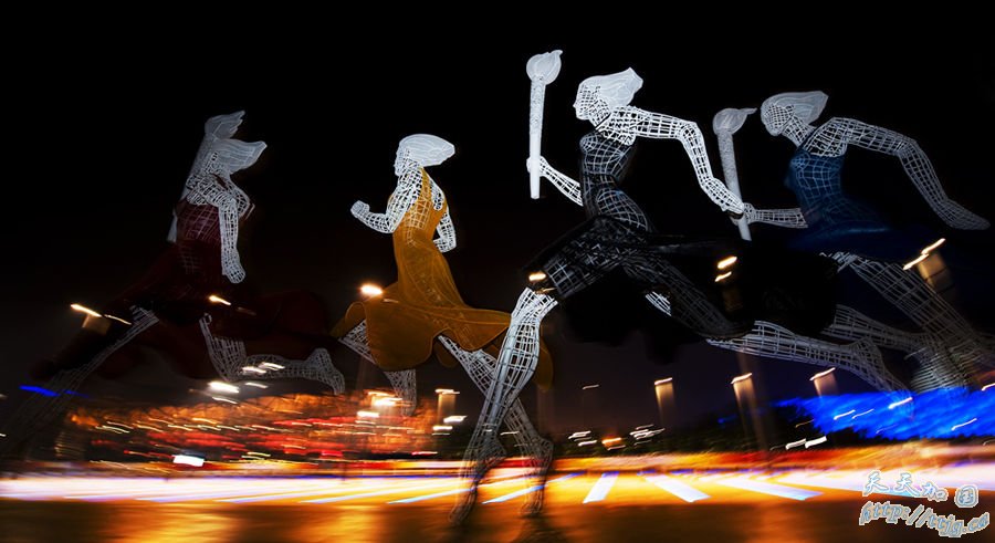 风光类冠军作品:舞动北京——作者:刘杰。【拍摄感言】在北京奥林匹克公园,距离“鸟巢”和“水立方”不远处有一组运动题材雕塑。借助现场夜间灯光效果,用慢门和闪光灯可以创造出一种动感效果。
