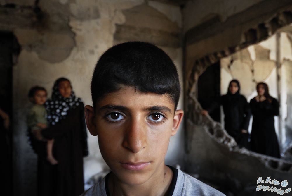 人像类冠军作品:轰炸之后——作者:郭磊。【拍摄感言】加沙,轰炸之后,法塔赫高级官员贾迈勒·阿布·吉丁家的四层住宅已是一片焦黑色。当时,吉丁家有9个孩子被困在房子里,经历了记忆中难以磨灭的黑色时刻。在我采访过程中,14岁的哈尔纳迪神情木讷,透出一个孩子空洞无际的眼神。