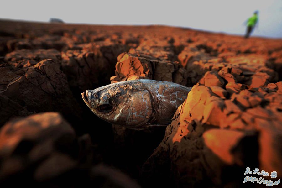 动植物类冠军作品:一天到晚不游泳的鱼——作者:秦晴。【拍摄感言】2010年4月3日傍晚,云南省曲靖市陆良县大莫古镇德格海子水库,一条陷入库底渴死的小鱼,再也无法自由游曳……2010年云南省遭遇百年未遇大旱,很多水库干涸,人畜饮水困难。从2月到4月间,我多次深入滇东北山乡,拍摄了大量反映旱情、抗旱的图片,这,是最触痛我心的一幅。