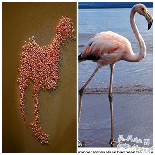 摄影师鲍比.哈斯(Bobby Haas)日前到墨西哥尤卡坦半岛(Yucatan, Mexico)拍摄,正要离开时,发现河面上有着一大群火烈鸟,当他仔细观察时发现,鸟群们正组成一个令人难以置信的形状。
