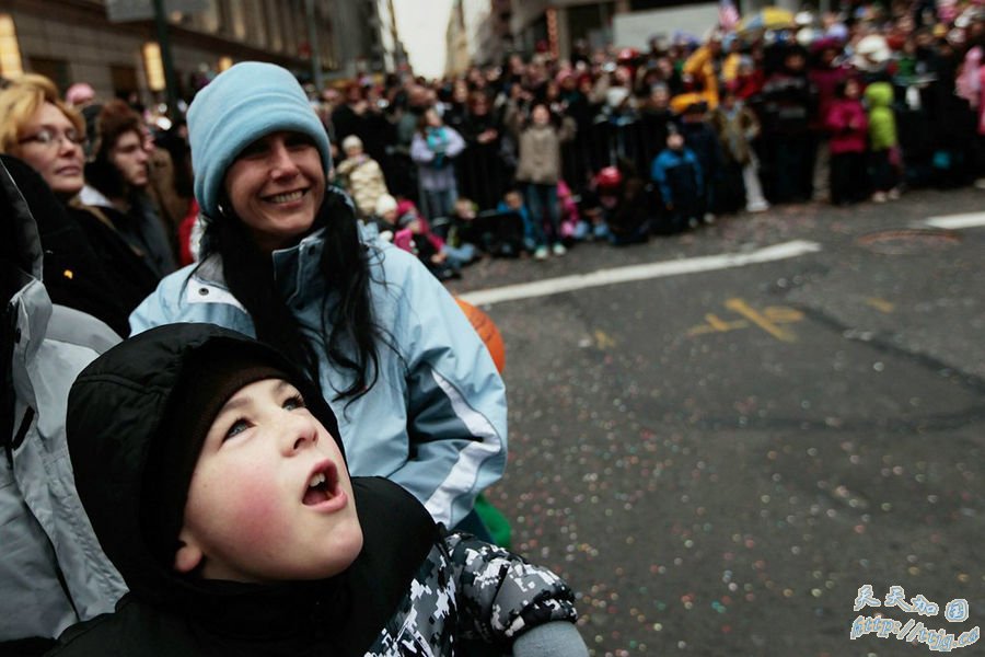 站在记者身边的纽约居民乔治·凯利早上7点就带着女儿出来占位,他说看游行已成感恩节必不可少的活动。他小时候是坐在父亲的肩上看游行,如今他的肩头则坐着3岁的小女儿。他说:“只有闻到火鸡的香味,听到感恩节游行的尖叫,那才算是真正的感恩节。”