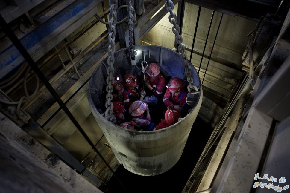 在戈壁沙漠的奥夫勒陶勒的金矿和铜矿里,在经过一天辛苦的工作之后,矿工们返回地面。