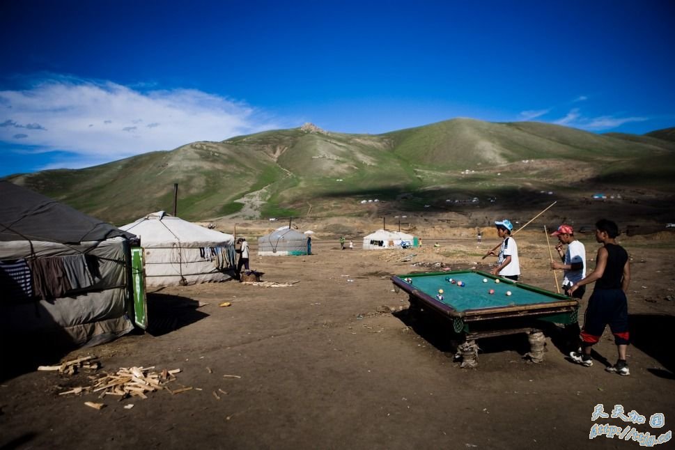 在位于Uyanga附近的一个工地上,独立矿工们,也被称为“忍者”在打美式台球。