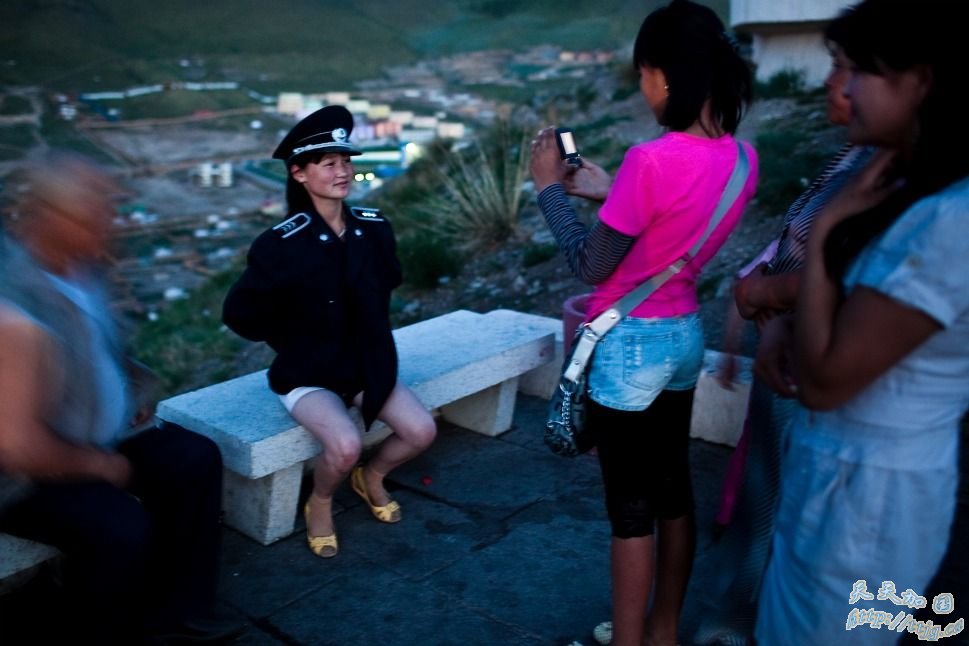 很多蒙古旅行者在位于乌兰巴托的翟山抗日纪念碑前摆姿势照相。