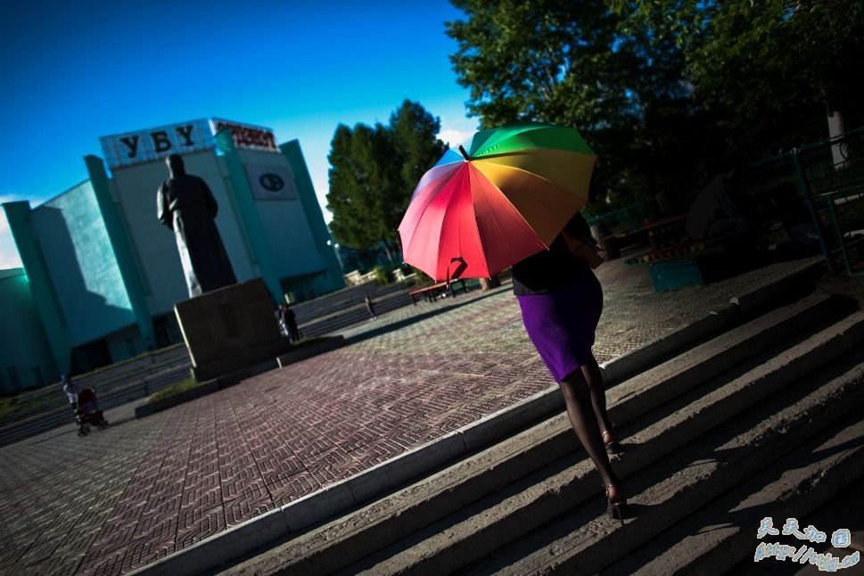 一位女士走过位于额尔登特市的一处公园。生活在首都乌兰巴托的很多市民都是住在蒙古包样的贫民区里,很多人没有基本的服务设施。