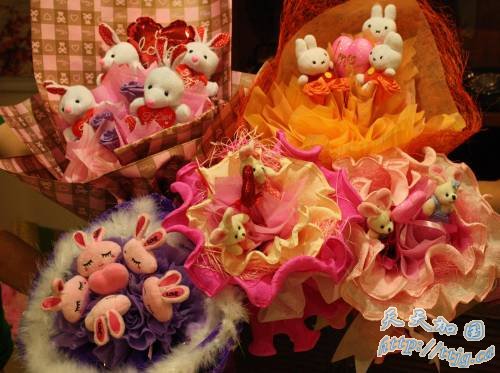除了普通应景的玫瑰花,马来西亚花店绞尽脑汁,设计出与兔子有关的花束或公仔,以迎合兔年的市场需求。
