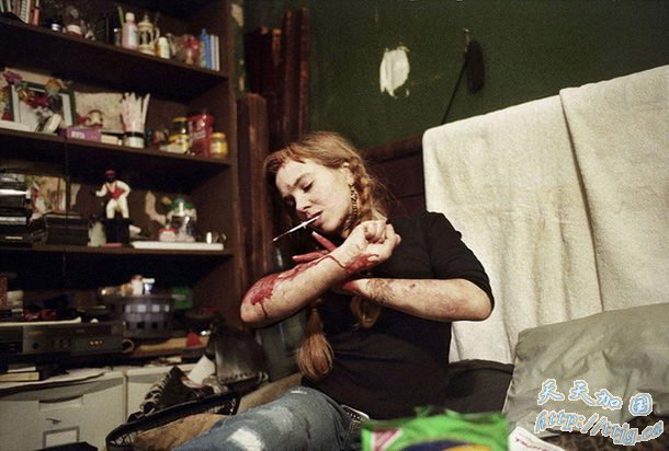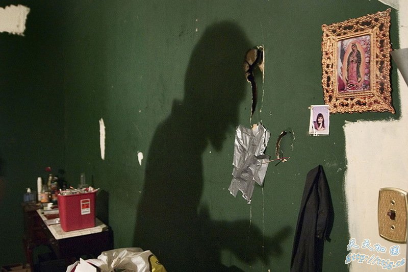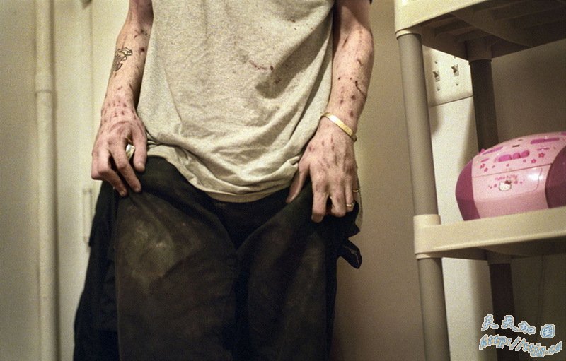 2004 年,Dimmock遇到了一个海洛因贩子,那个人问她,你是不是愿意和我一起去见各种各样的瘾君子?Dimmock回答:“我愿意”。随后Dimmock 带着自己的第一批照片去见美国ICP摄影中心的老师,老师鼓励她一定要跟着毒品贩子继续拍。在她连续跟踪这个人两个晚上之后,她发现了一个公寓——肮脏、混乱、聚集了很多瘾君子,这个公寓就成为了她随后持续拍摄的据点。(图片来源:环球网)